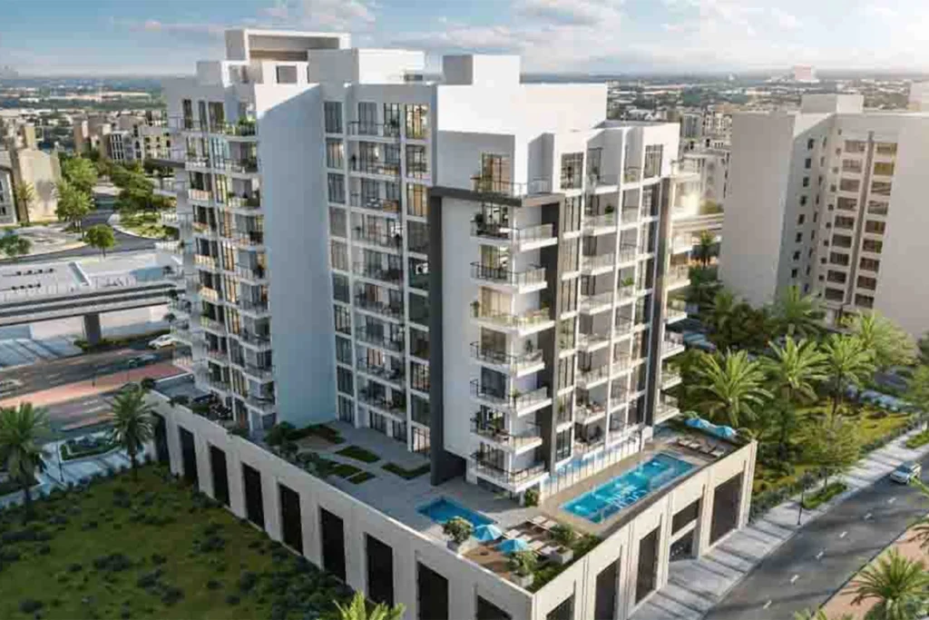 Apartments are found in low to mid-rise buildings, ranging from 1 to 3 bedrooms, with shared amenities such as pools, gyms, and retail spaces.
