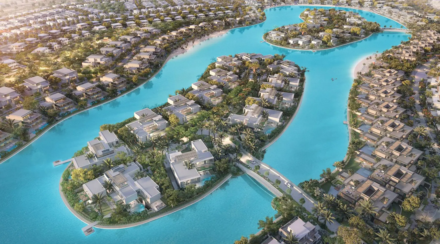The community offers luxury homes with modern designs, spacious layouts, and views of the lagoon and landscaped parks.
